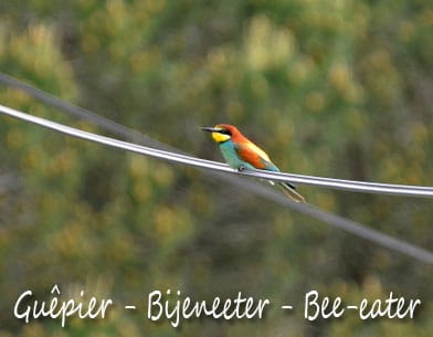 Lors de vos balades en dehors du camping, surveillez bien les fils téléphoniques : c’est sur ce perchoir improvisé que se retrouvent Guêpiers d’Europe, Tarier pâtre, Bruant jaune et autre Pie-grièche à poitrine rose pour siffler les passantes et passants.